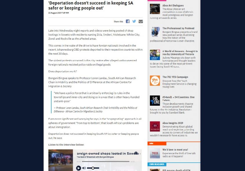 Professor Loren Landau speaks in The Best of Breakfast with Bongani Bingwa.