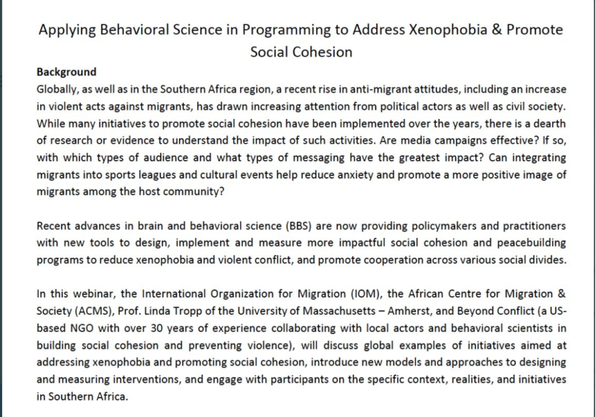 WEBINAR | Applying Behavioral Science in Programming to Address Xenophobia and Promote Social Cohesion