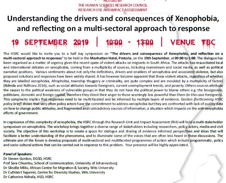 Xenowatch participated in a dialogue on ‘Understanding the drivers and consequences of Xenophobia, reflecting on a multi-sectoral approach to response’, which was hosted by The Human Sciences Research Council (HSRC).