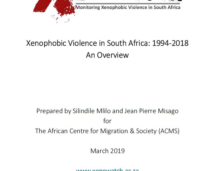 Xenophobic Violence in South Africa: 1994-2018 – An Overview Report. Prepared by Silindile Mlilo and Jean Pierre Misago