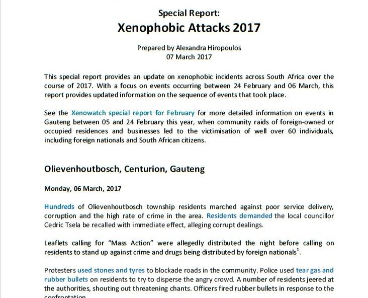 Xenophobic Attacks: Report 2017