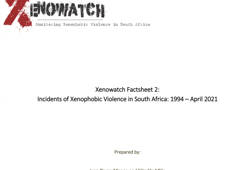 Xenowatch Factsheet 2: Incidents of Xenophobic Violence in South Africa: 1994 – April 2021
