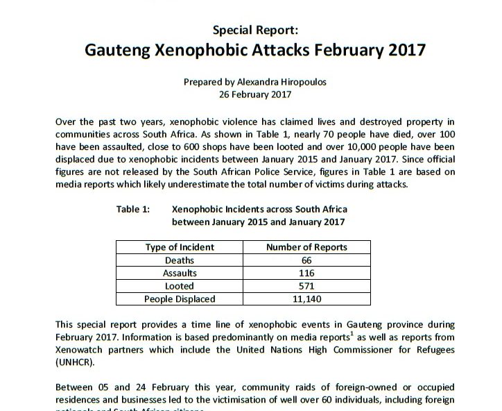 Special Report: Gauteng Xenophobic Attacks February 2017. Prepared by Alexandra Hiropoulos